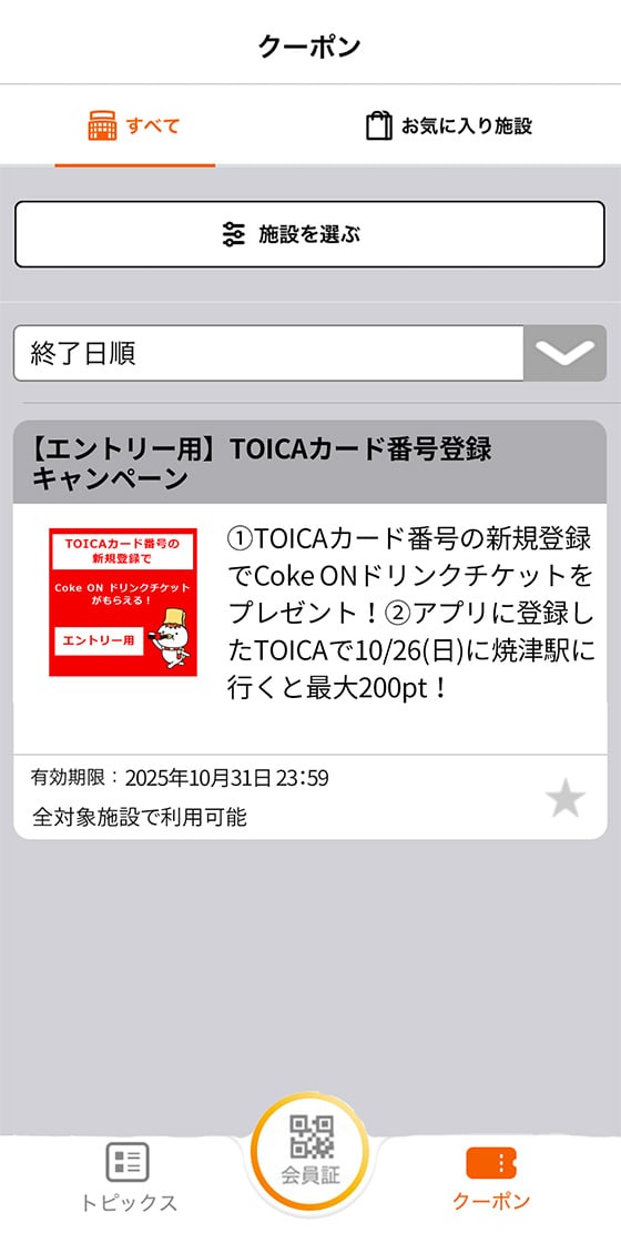 ★キャンペーン期間中にTOICAカード番号を新規登録された方はここまででドリンクチケットプレゼントの対象となります!