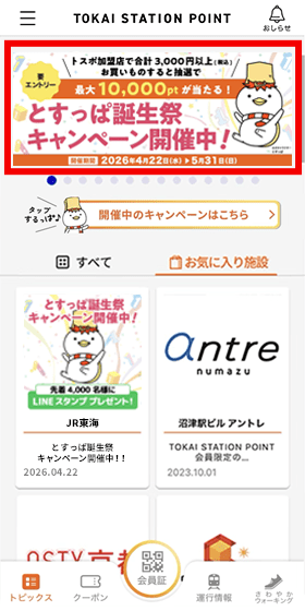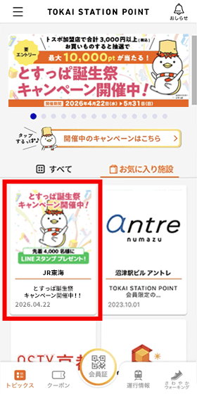 - 参加には、TOKAI STATION POINTアプリのダウンロード、会員登録が必要です。