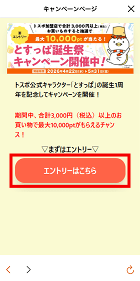 特典④:「トスポ最大10,000pt!」へのエントリー方法