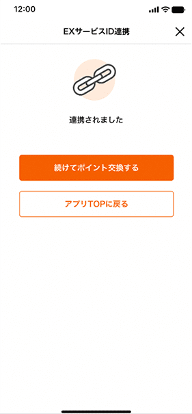 最後にもう一度確認画面が表示されるので、「EXサービスID連携を実行する」のボタンをタップします。