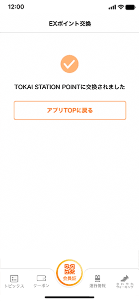 連携完了!EXポイント交換でTOKAI STATION POINTアプリをもっとお楽しみください。