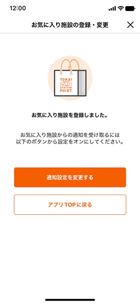 登録完了!TOKAI STATION POINTアプリでお買い物をお楽しみください!