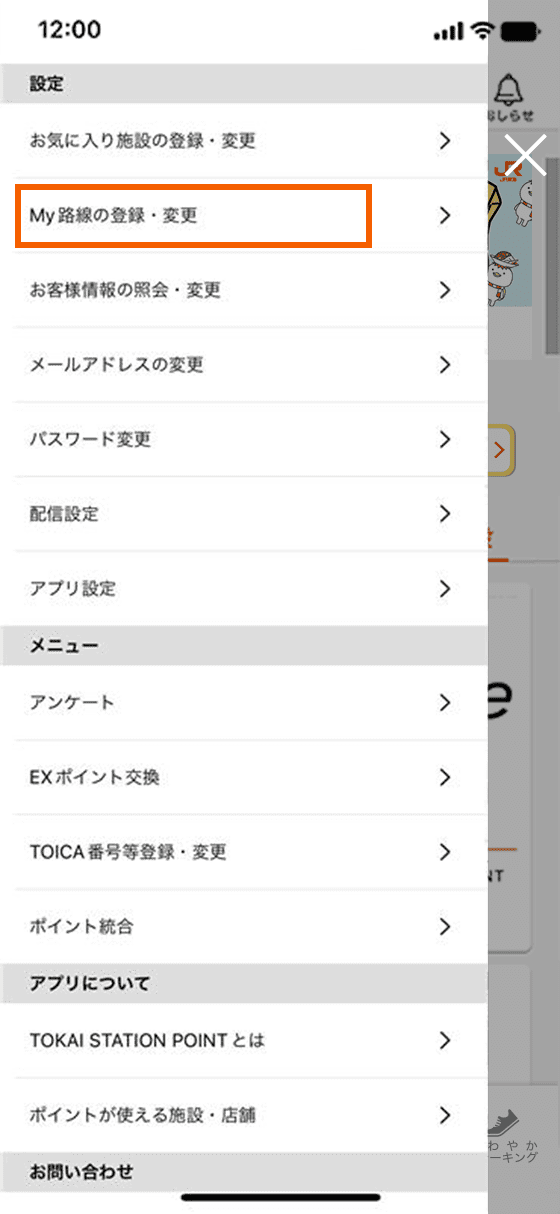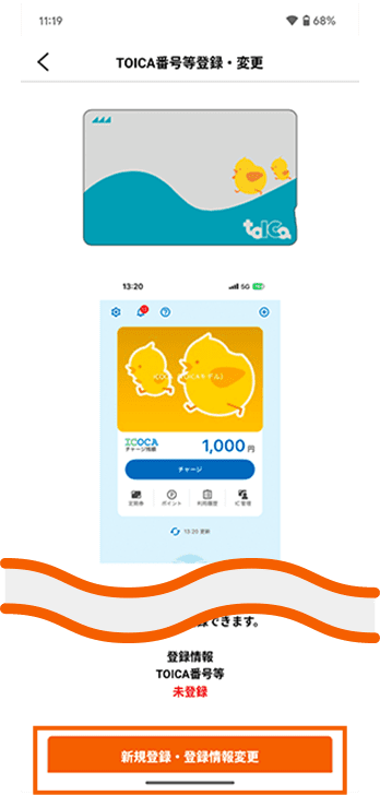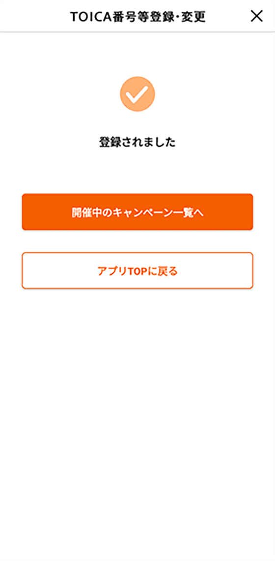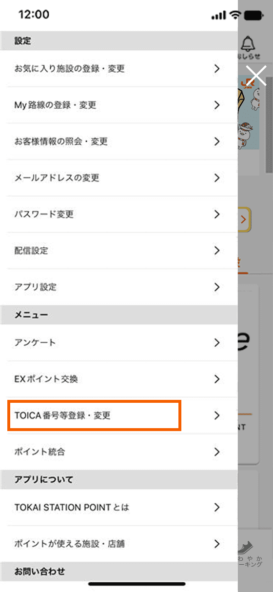 アプリメニューから「TOICA番号等登録・変更」をタップします。