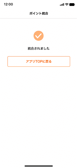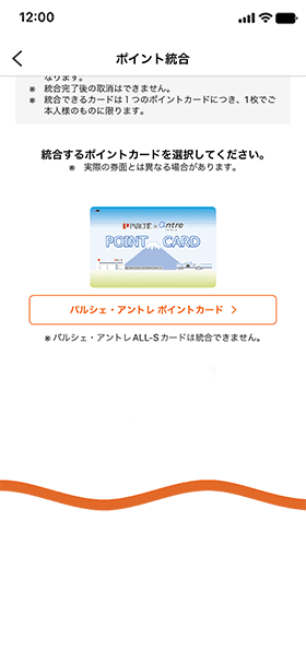 アプリメニューから「ポイント統合」を選択し、統合するポイントカードをタップします。