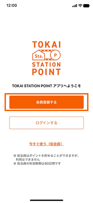 仮会員の有効期限は60日間です。仮会員の登録後は60日以内にアプリメニュー(左上の三本線のマーク)から本会員登録をしてください。