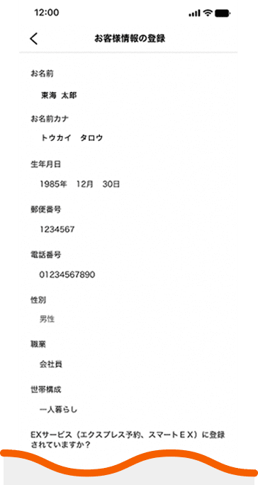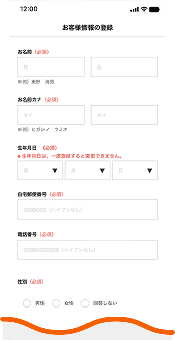 お客様情報の登録画面が表示されるので、各項目を入力して「登録内容を確認する」をタップします。