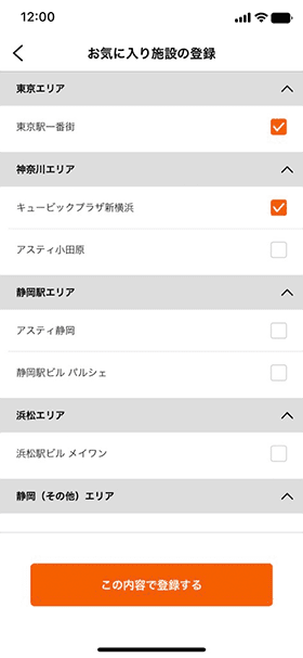 最寄りの施設やよく利用する施設にチェックを入れ「この内容で登録する」をタップします。