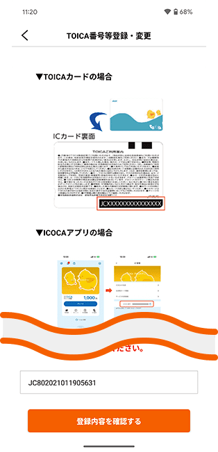※TOICAカードの場合、“JC”から始まる17桁の英数字コード