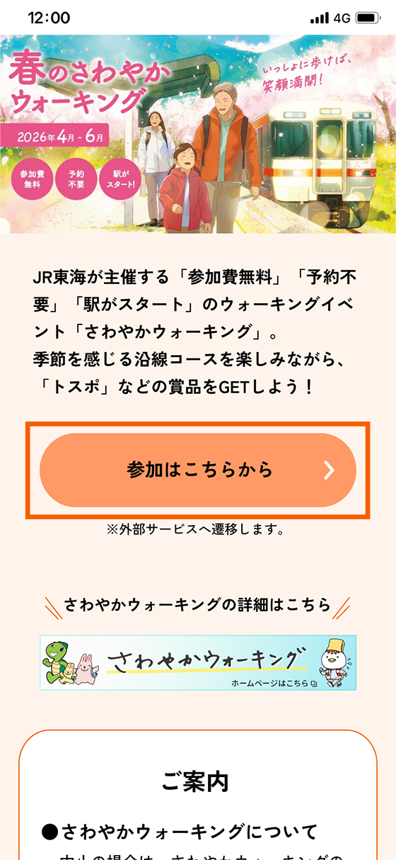 JRに乗ってスタート駅へ直接お越しください。事前の予約や参加費は不要です。